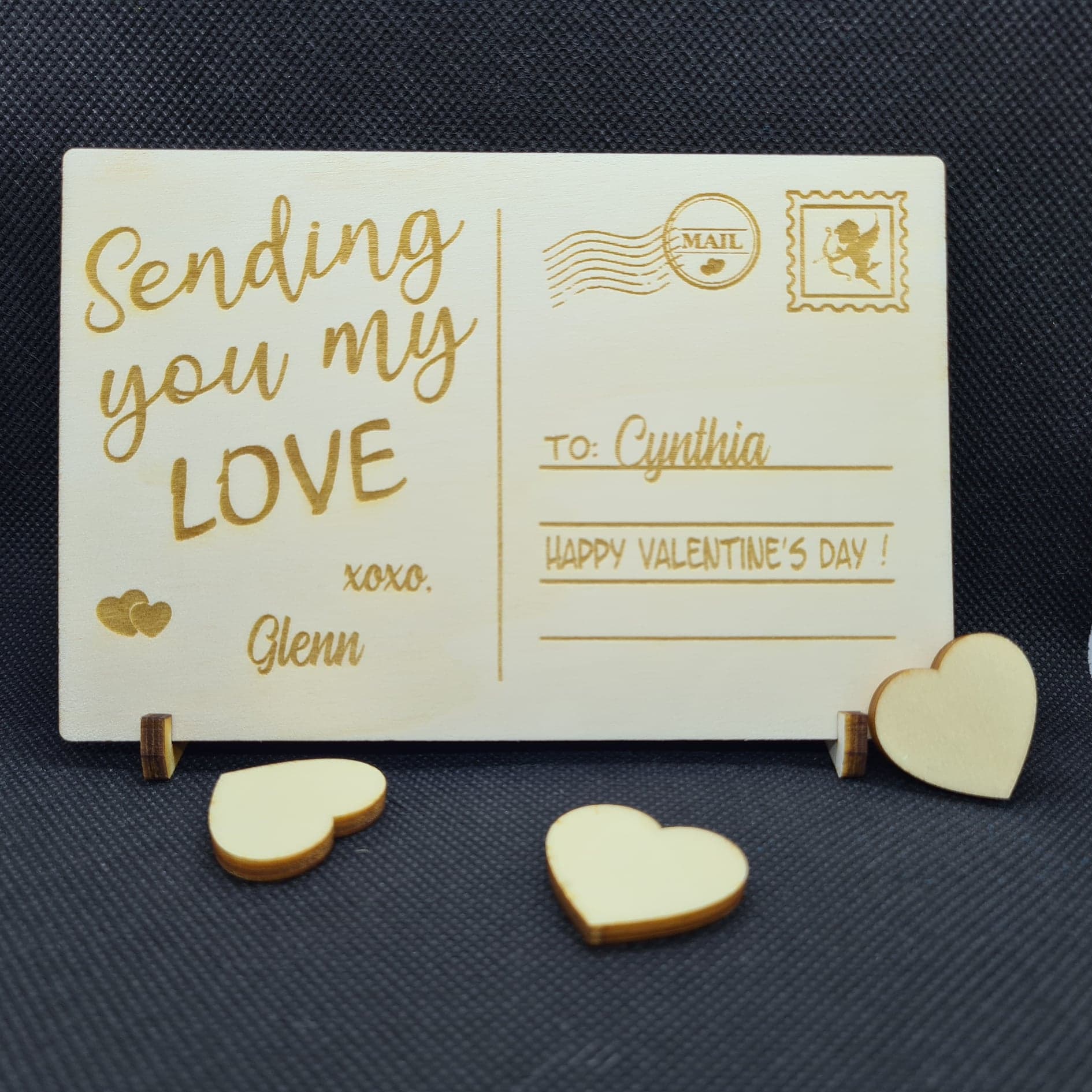 Stuur een attente postkaart naar iemand van wie je houdt met deze gepersonaliseerde gegraveerde houten postkaart. Dit is een uniek cadeau-idee om iemand te laten zien hoeveel je van hem/haar houdt en het is een prachtig aandenken dat hij/zij altijd zal koesteren.